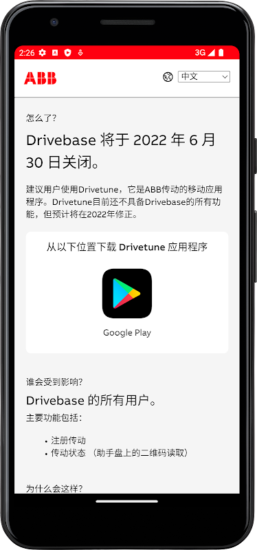 Users are advised to use Drivetune which is the mobile application for ABB drives.