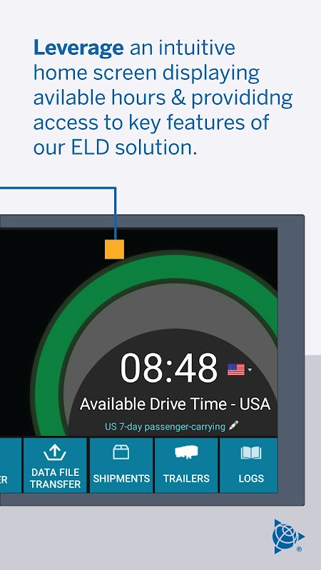 O aplicativo Trimble Driver ELD fornece aos motoristas soluções compatíveis relacionadas a Registros de Motoristas e Relatórios de Inspeção de Veículos. Isso inclui a conformidade com os regulamentos de dispositivos de registro eletrônico dos EUA e do Canadá.