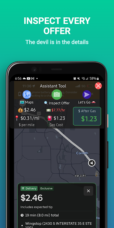 Calcule os valores das ofertas antes de aceitar uma oferta de entrega. Tenha uma visão real do que sua oferta de entrega pelos aplicativos de serviços está oferecendo.