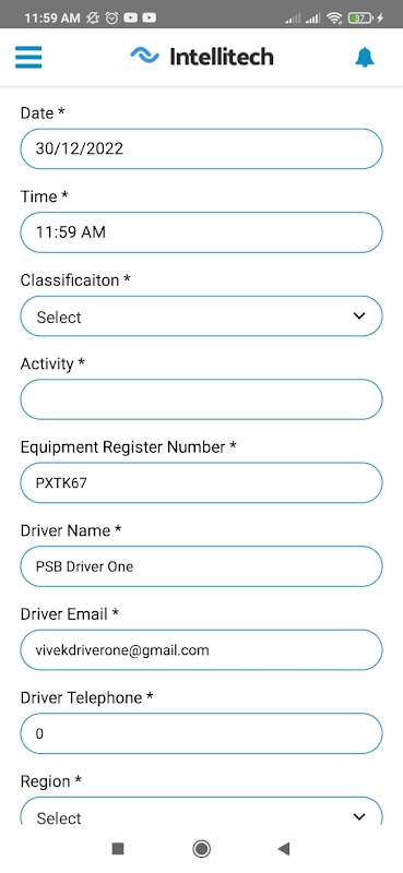 Aplicativo móvel do motorista para rastrear o comportamento do motorista e monitorar a distração