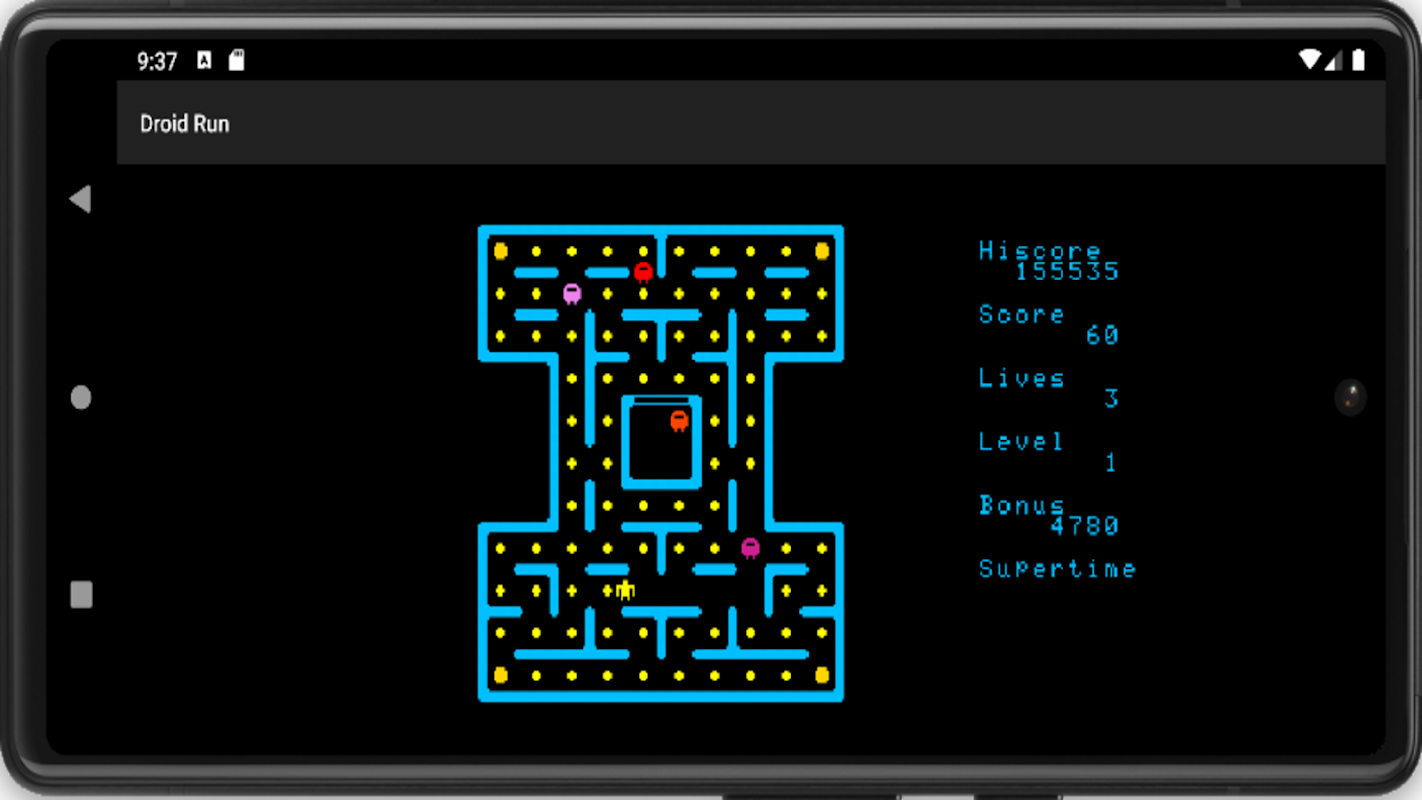 O humano precisa comer todos os pontinhos para completar uma fase,