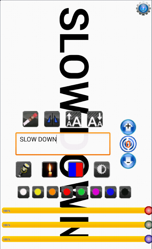 Este aplicativo pode ser usado como uma luz, cor, luz da tocha, luz da busca, luz do ponto, luz da noite, luz área, e lanterna para a produção de cores, placas de sinalização, painéis de mensagens, mensagens, sinais digitais, sinais dinâmicos, luzes de polícia , luzes de emergência, estroboscópicas (como em uma luz estroboscópica) e luzes de discoteca.