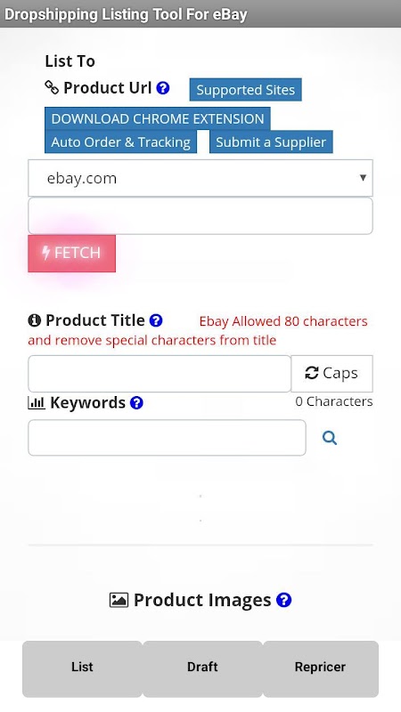 Add an item url from over than 170 "dropshipping friendly" Supported Suppliers (US, UK, CH), and create SEO Listings into seconds. Auto Ordering system included. Multi Repricer