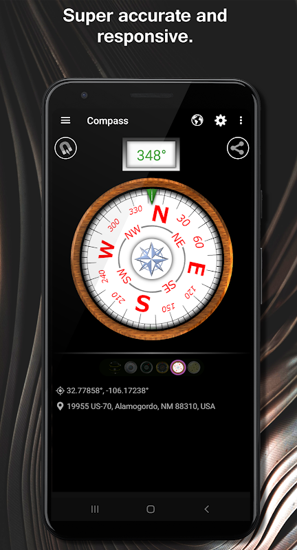 Nosso aplicativo apresenta vários estilos de bússola e modos de operação de bússola.