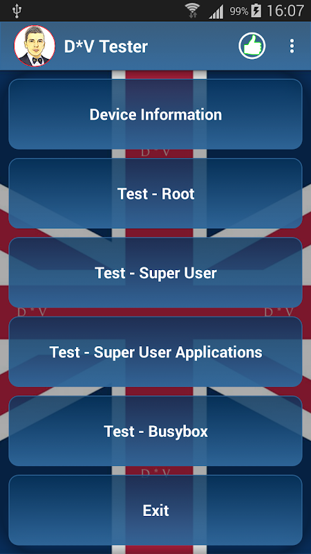 "DV Testador" fornece uma maneira muito simples de verificar a instalação ou não do root, superusuário, busybox no seu dispositivo sem fazer nada.