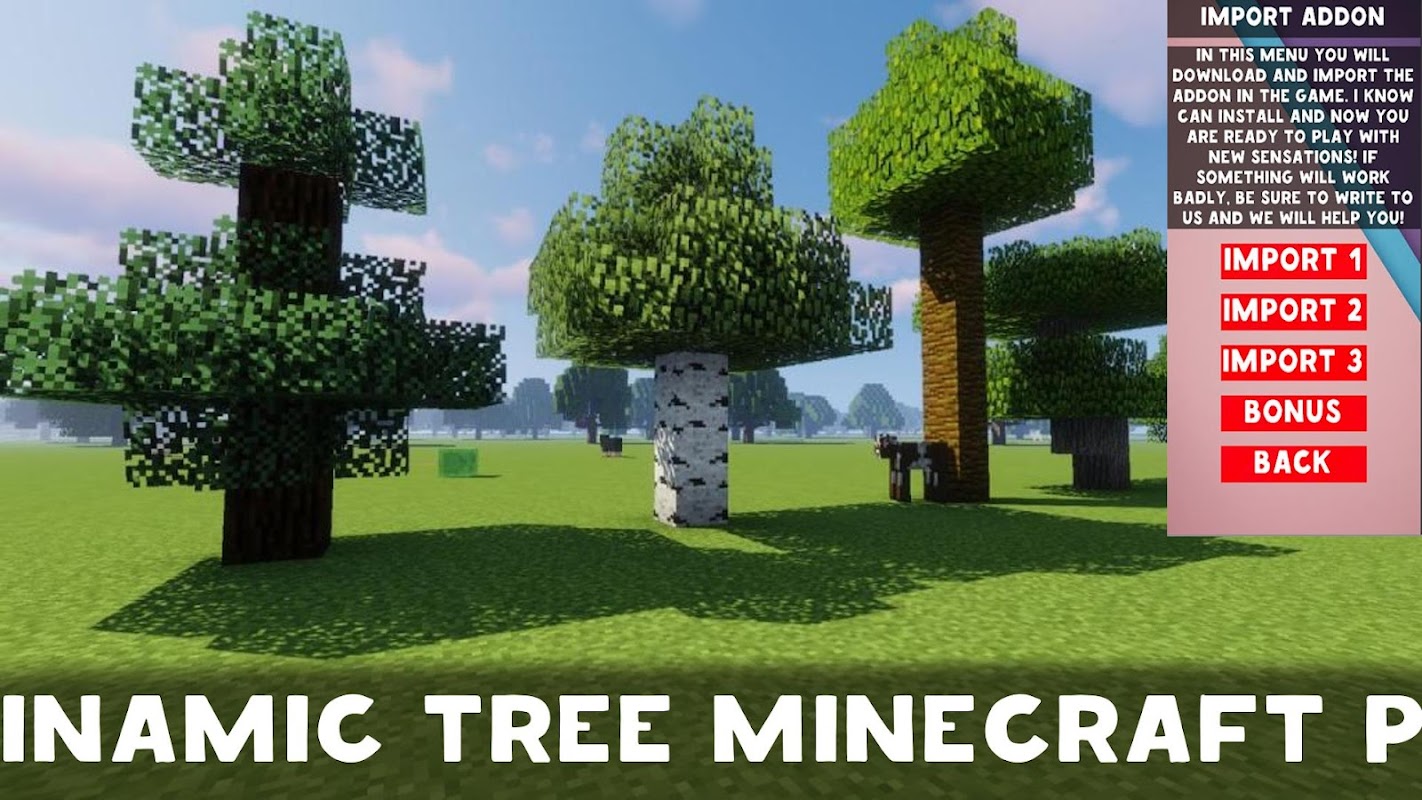 Dynamic Tree mod for Minecraft PE is an addon that adds different rare Dynamic Tree for Minecraft PE. Install Dynamic Tree mod for Minecraft Pocket Edition, rejoice and let all other players envy your Dynamic Tree