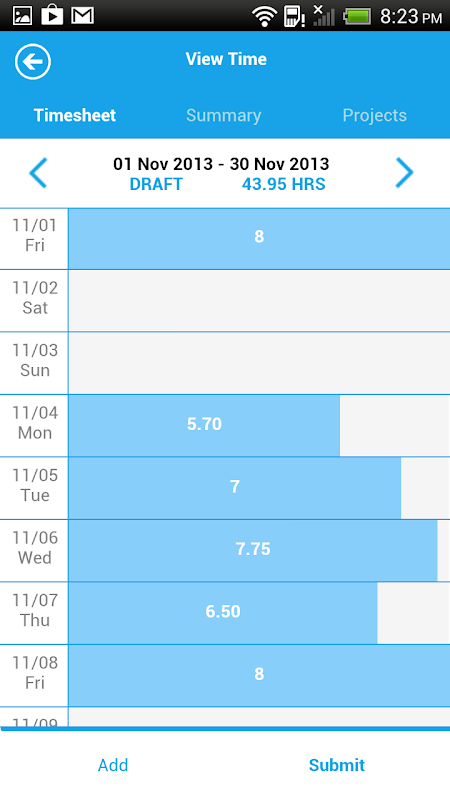This application also allows you to create and submit timesheets. The information captured with this application will be available when you enter or update an expense report and/or timesheets in Microsoft Dynamics AX 2012 R2.