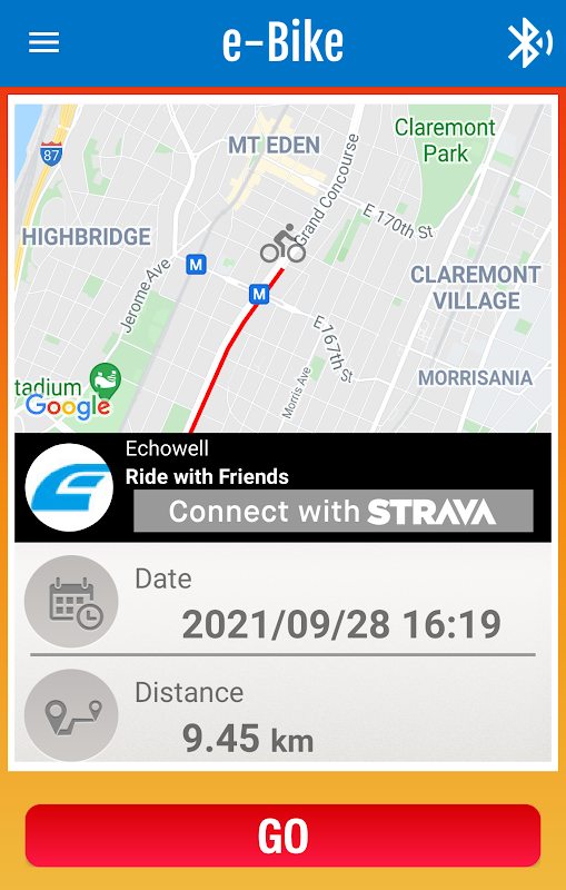 O aplicativo tem grande display de sincronização para e-bike e aplicativo de ciclismo de bicicleta.
