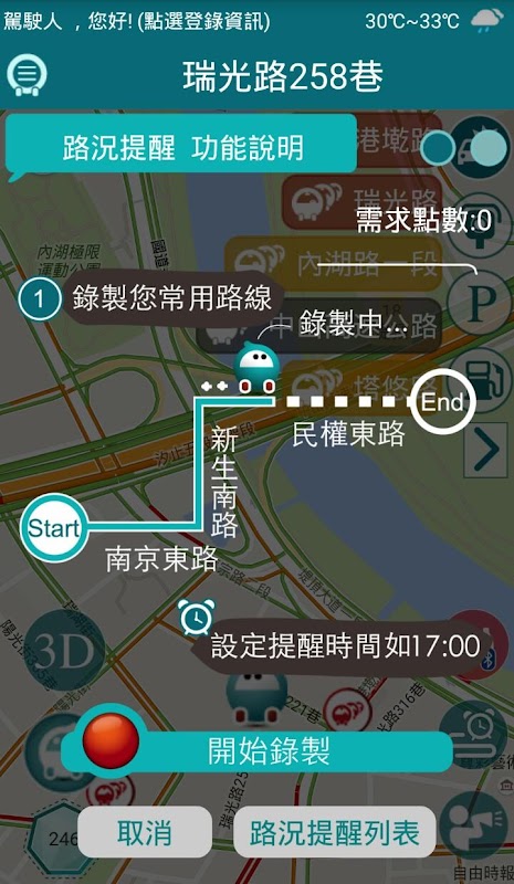 通勤、上下學、購物等預定路線的行車資訊一手掌握