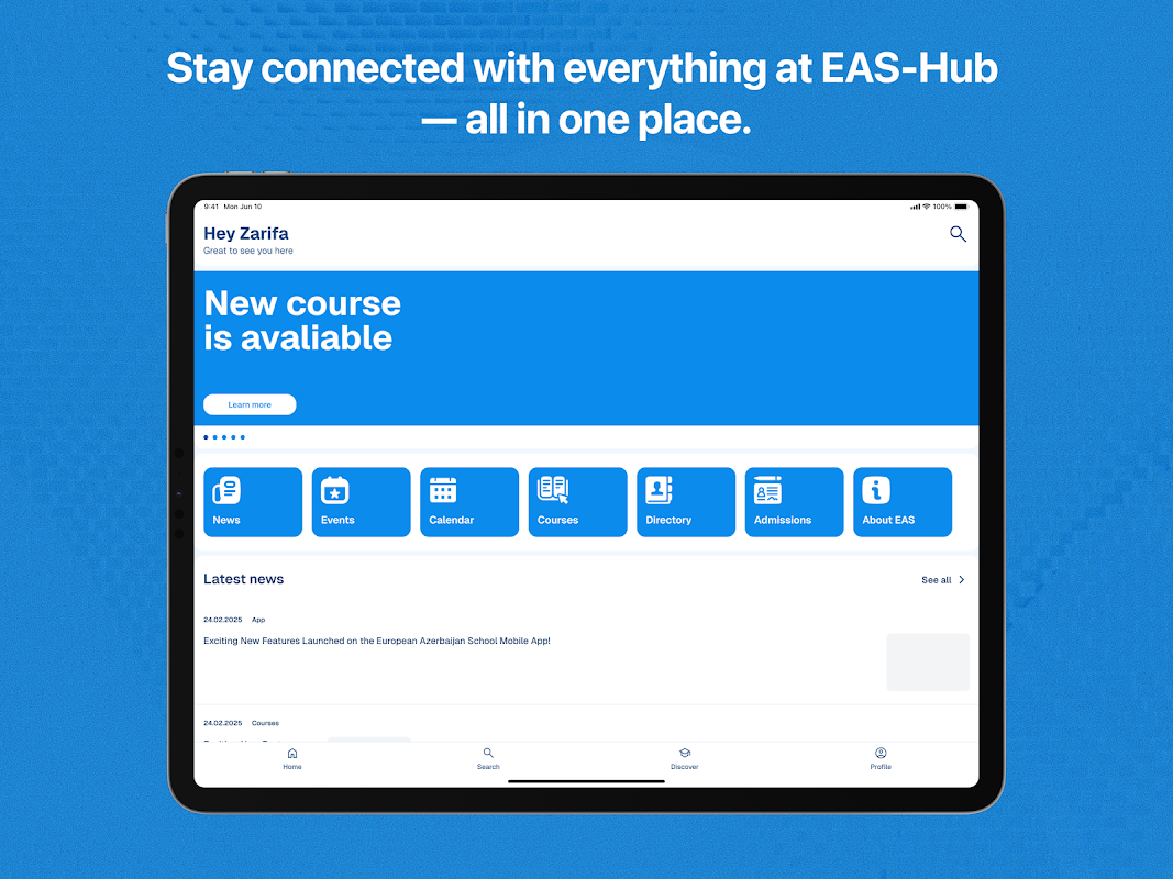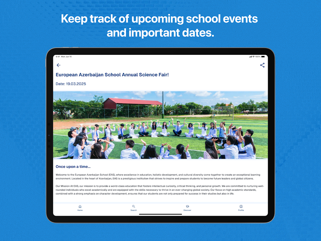 O aplicativo oficial da Escola Europeia do Azerbaijão oferece a pais, alunos e visitantes uma maneira conveniente de se manterem conectados com a comunidade escolar.
