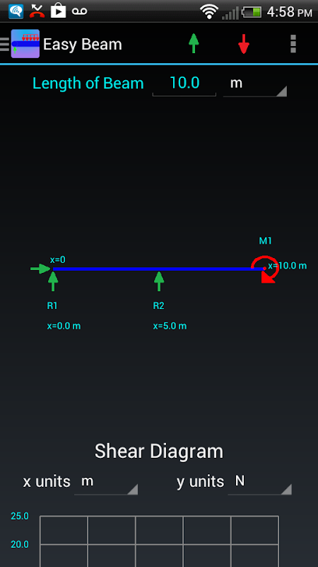 Easy Beam allows you to easily and swiftly calculate reaction forces, shear, moment, slope, deflection and stress diagrams for beam analysis. What sets Easy Beam apart from other apps is its ability to customize a beam however you need it to be to suit your beam analysis and the sleekness of the app - drawing everything to your screen how you want it. Easy Beam follows along the principles of statics and dynamics, mechanics of materials, and solid mechanics and is thus very applicable to structure engineering and mechanical engineering.