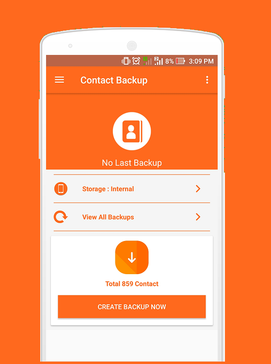 Você pode fazer backup de todos os seus contatos com um único toque para o armazenamento interno, bem como de armazenamento externo.