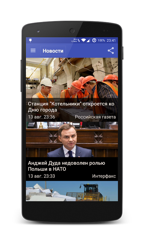 Все СМИ рунета без коротких текстов RSS и переходов на сайты в браузере, сразу у себя в телефоне.