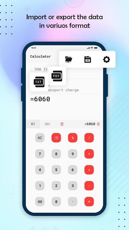 Neste aplicativo, você também pode salvar os cálculos e suas anotações como um arquivo de texto ou pdf para manter registros de seus cálculos importantes e também compartilhá-lo com seus clientes, clientes, parceiros de negócios, etc.