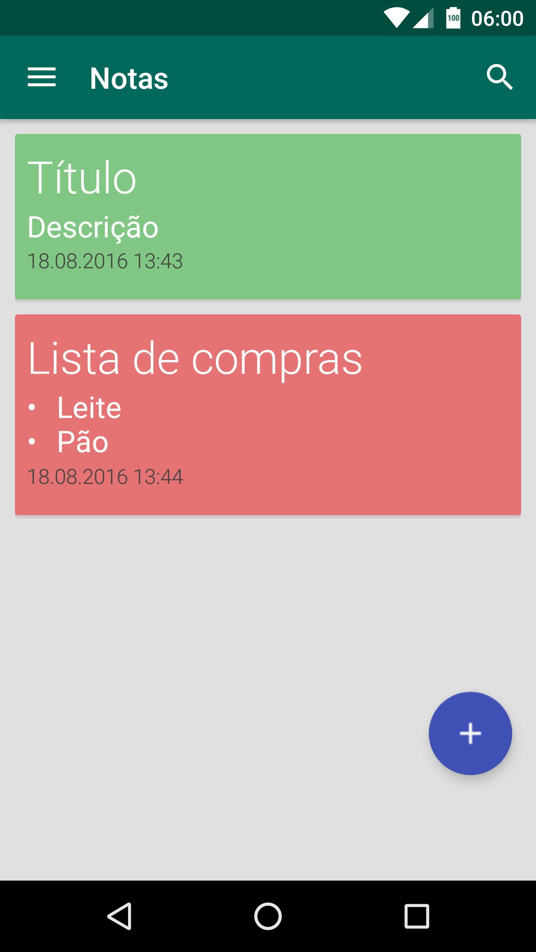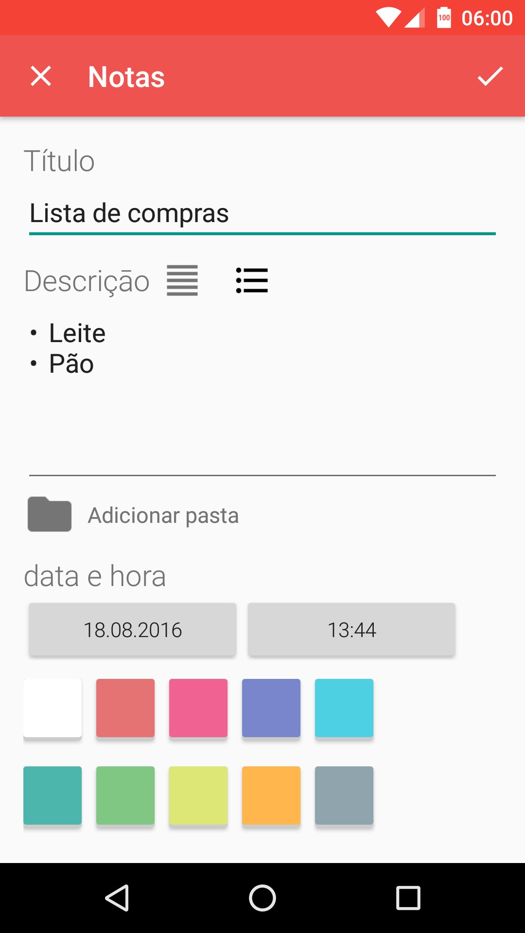 Com Notas pode criar notas e listas com diferentes cores de fundo.