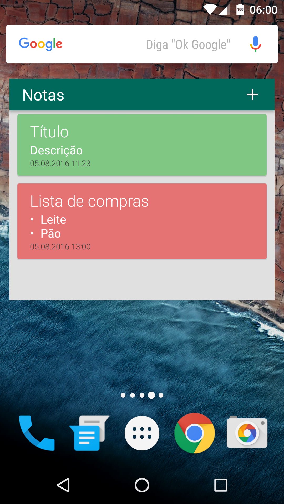 No widget você pode ver todas as notas, você pode iniciar o aplicativo e criar rapidamente uma nova nota.