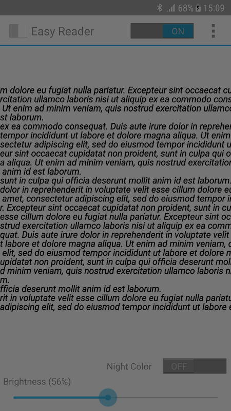 Easy Reader allows you complete control over your screen brightness to allow comfortable reading by night.