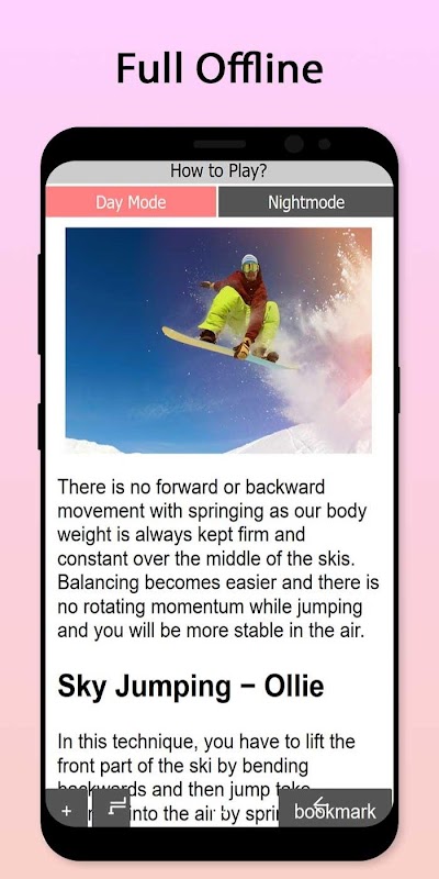 "Este é apenas um incrível tutorial off-line completo para aqueles que querem aprender Salto de Esqui. O Inside é um tutorial completo de Saltos de Esqui para iniciantes e avançados, totalmente off-line, para que você não precise mais de uma conexão com a Internet.