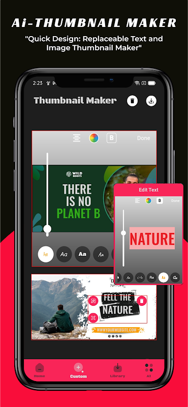 Com o Thumbnail Maker, você tem controle total sobre seus designs. Carregue suas próprias imagens ou escolha em nossa extensa biblioteca de planos de fundo para dar início à sua criatividade. Adicione fontes personalizadas, ajuste o tamanho da fonte e até mesmo incorpore várias fotos em um quadro para criar a miniatura perfeita que represente seu conteúdo.