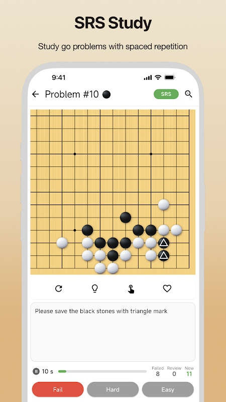 Grave jogos, crie seus próprios problemas ou revise partidas profissionais — tudo com o editor de SGF intuitivo do EasyGo.