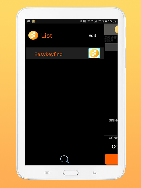 Primeiro de tudo, em busca do Bluetooth do localizador de chave. Toque no ícone Scan na lista de dispositivos para se conectar com localizador de chave, em seguida, o aplicativo irá mostrar o seu nome e também você pode renomeá-lo como quiser.