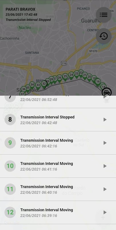 As atualizações de localização do dispositivo em mapa são automáticas, conforme as transmissões são geradas pelo equipamento.