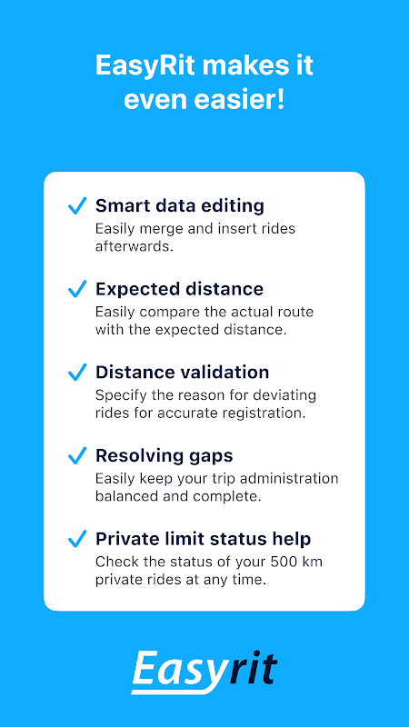 EasyRit é o aplicativo mais fácil de usar para registrar suas unidades de carro para o benefício das autoridades fiscais, empregador, contador ou sua própria administração.