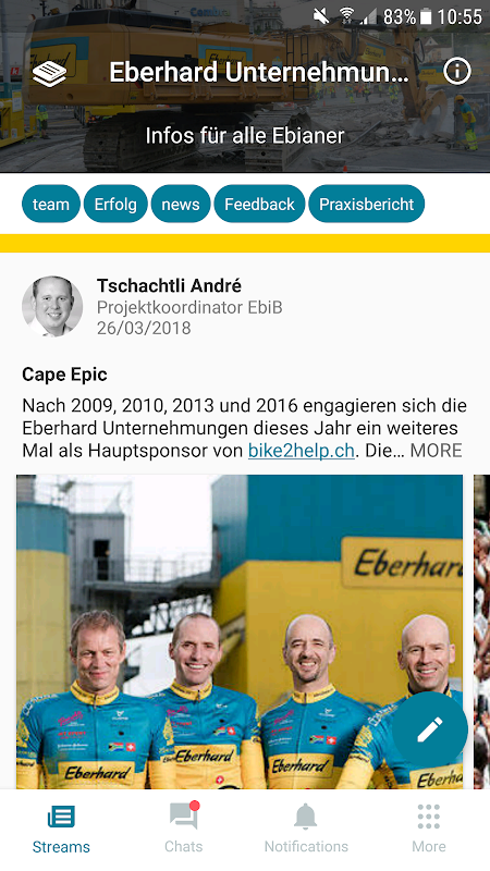 Tausche dich auf this Plattform aus und bleibe auf dem Laufenden, was bei den Eberhard Unternehmungen passiert. Teile deine Ideen, Erfahrungen und Erfolge e informiere dich über Updates in den Beiträgen.