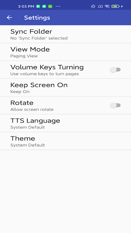 O leitor não copia livros e arquivos para seu armazenamento; Detecte arquivos duplicados, salve marcadores e páginas lidas no momento, mesmo quando os arquivos são movidos ou excluídos. Por exemplo, mesmo se você excluir o arquivo e baixar o livro novamente, poderá continuar lendo o livro a partir da última página de leitura. Leitor de ebook O leitor de ebook suporta o armazenamento de dados em cartões SD.