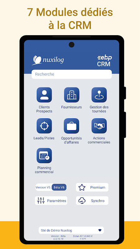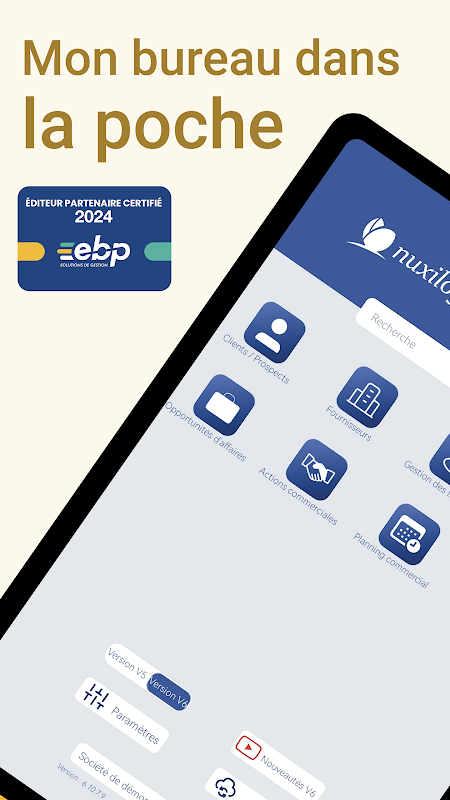 Conheça NuxiDev V6, a extensão móvel ideal para usuários de software CRM EBP. Acesse todos os dados dos clientes, insira ações de vendas e acompanhe suas oportunidades pelo smartphone ou tablet, em qualquer lugar e a qualquer hora.