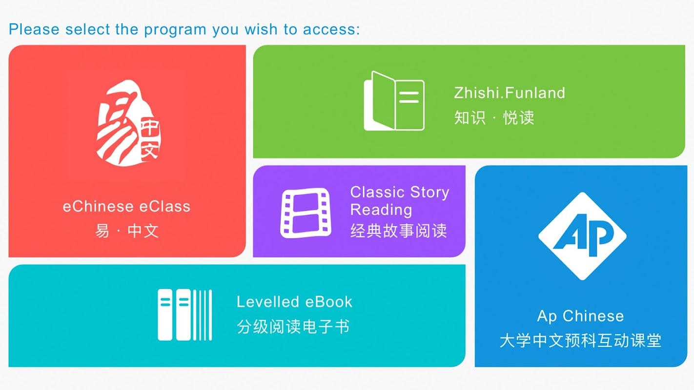 O eChinese APK é desenvolvido especialmente para entrar no portal interativo de ensino e aprendizagem eChinese através de tablets Android ou smartphones para assinantes eChinese, aplicável a professores, alunos e assinantes individuais.