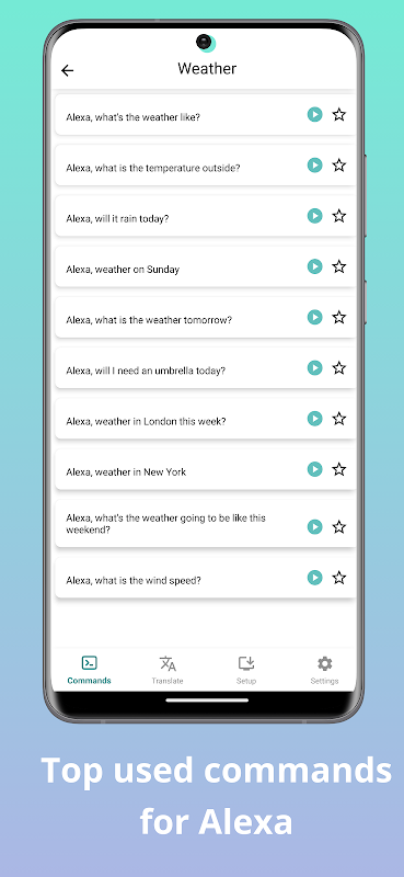 Um poderoso aplicativo Echo Alexa Smart Speaker atua como assistente pessoal da sua casa inteligente. Traduza por voz seus idiomas nativos com os comandos principais para falar com seus alto-falantes inteligentes. Este aplicativo Alex para comandos de voz para Alexa foi feito para você.