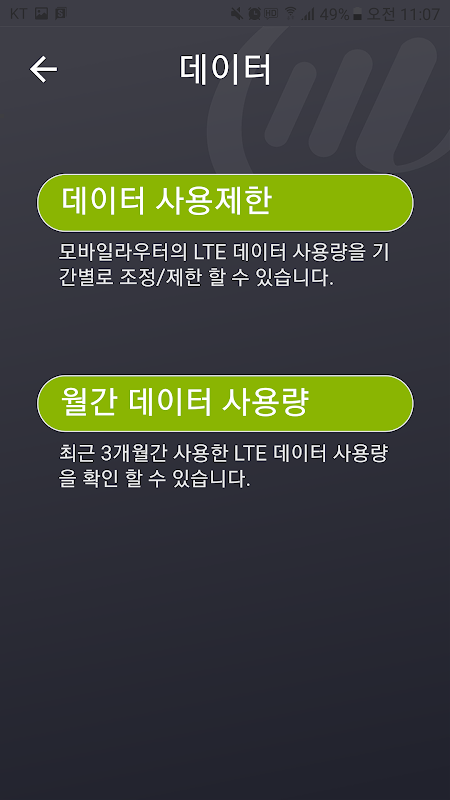 ※ 이 App은 통신 사업자와 상관없이 사용자의 편의를 위해 제조사에서 공급하는 App이며, App에서 표시되는 데이터 사용량은 실사용량과는 다소 차이가 있을 수 있으므로 사용시 유의하시기 바랍니다.