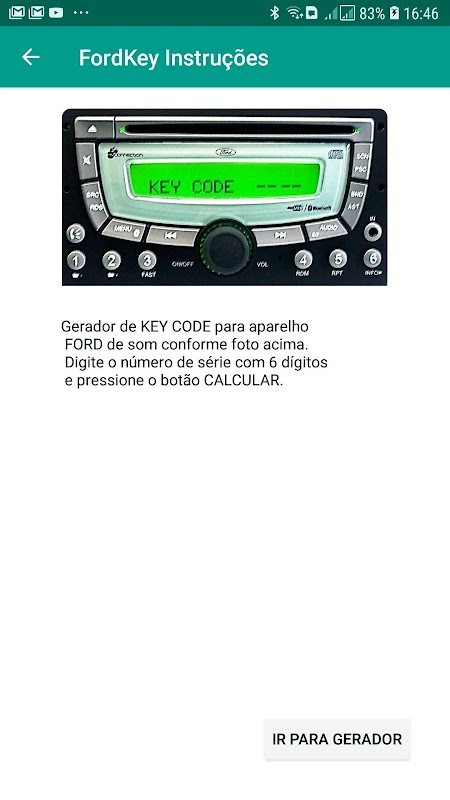 Gerador de Key Code para Aparelho de Som da Ecosport Modelo Tradicional