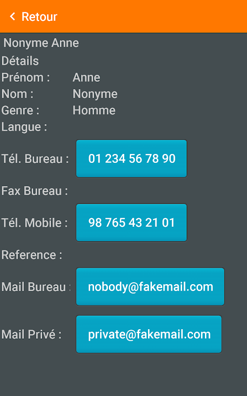 - Contactez vos partenaires par mail ou par téléphone d'un simple clic grâce au lien avec les applications dédiées de votre tablette ou de votre téléphone.