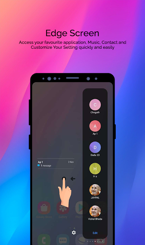 Edge Screen muito legal no seu telefone, agora está disponível para todos os telefones Samsung e todos os dispositivos Android !!! Ajude você a iniciar rapidamente o aplicativo favorito, discador de chamadas rápidas e mensagens rápidas em qualquer lugar a qualquer hora. 100 + Wallpaers e temas UI simples e plana design, refrescante.