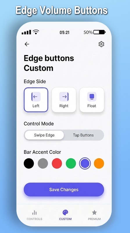 Controle de volume virtual: Adicione um elegante controle deslizante ou botões de volume invisíveis (ou coloridos!) diretamente na borda da tela.