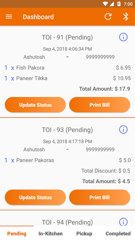 Edios TOI Admin app é usado para processar as ordens do cliente.