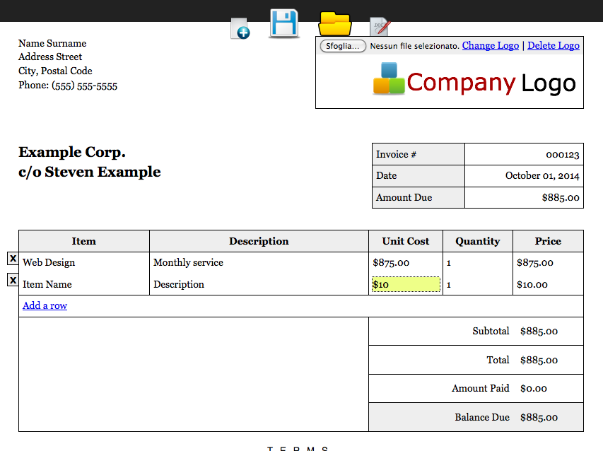 Uma aplicação útil que permite editar rapidamente as suas faturas com a adição rápida de produtos e o cálculo automático dos custos dos produtos individuais e do valor total. Você pode salvar suas faturas em seu armazenamento externo e reabri-las quando desejar. Você pode adicionar seu logotipo por meio de uma entrada de URL ou carregá-lo usando o botão para carregar