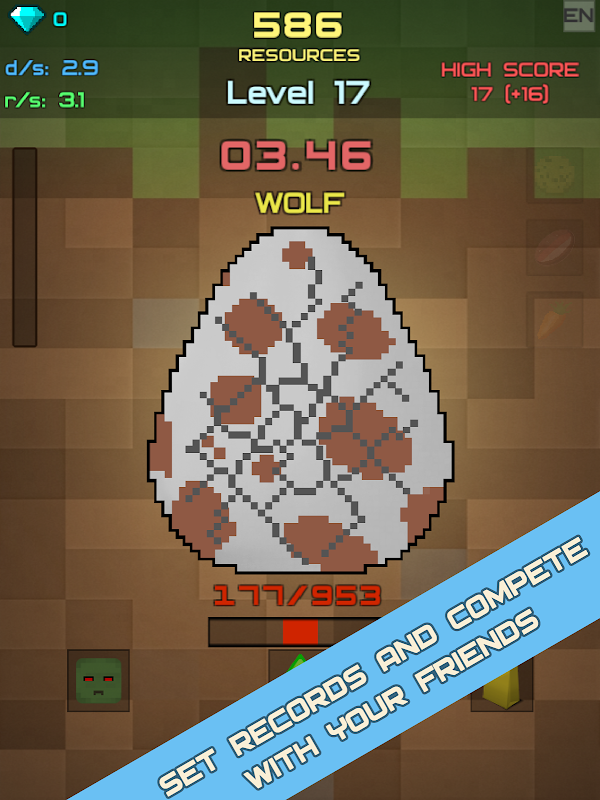 Quebre ovos! Obtenha mobs! Estabeleça recordes!