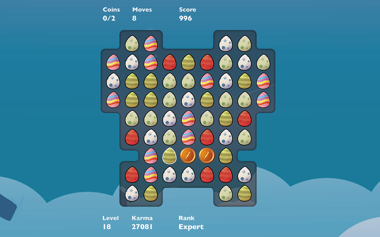 Ganhe ovos mágicos combinando cinco ovos em uma fileira ou coluna. Trocar um ovo mágico por um ovo comum destrói todos os ovos da mesma cor na grade, ganhando numerosos pontos. Ovos especiais, obtidos combinando quatro ovos em uma fileira ou coluna, têm uma borda branca. Combinar três ovos, incluindo um ovo especial, aniquila a linha ou coluna inteira.
