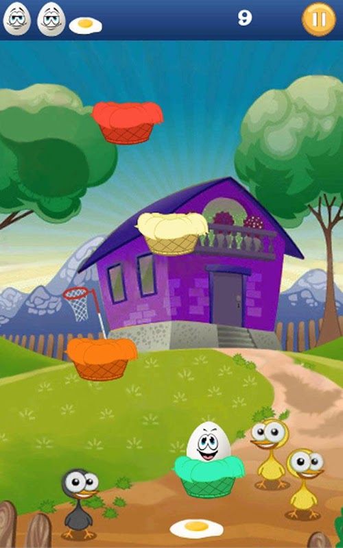- O ovo salta da cesta inferior para a cesta superior para subir e ganhar pontuação alta.