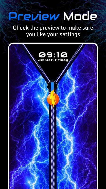 Você gostaria de desbloquear seu telefone de uma maneira realmente única e personalizável? Com nossa nova tela de bloqueio elétrico, você tem a opção de escolher seu próprio papel de parede para a tela do armário e para o plano de fundo do seu dispositivo. Altere também o estilo, a cor e o design do zíper com apenas um simples clique até encontrar a melhor combinação que funciona para você.