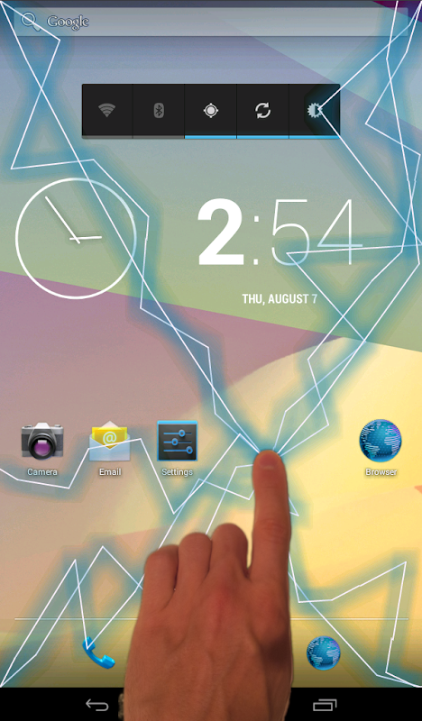 Efeito trovão elétrica pode ser exibido em fundo transparente (o fundo será o último abriu app), ou você pode definir o efeito a ser exibida em sua tela inicial papel de parede (você pode encontrar instruções de como