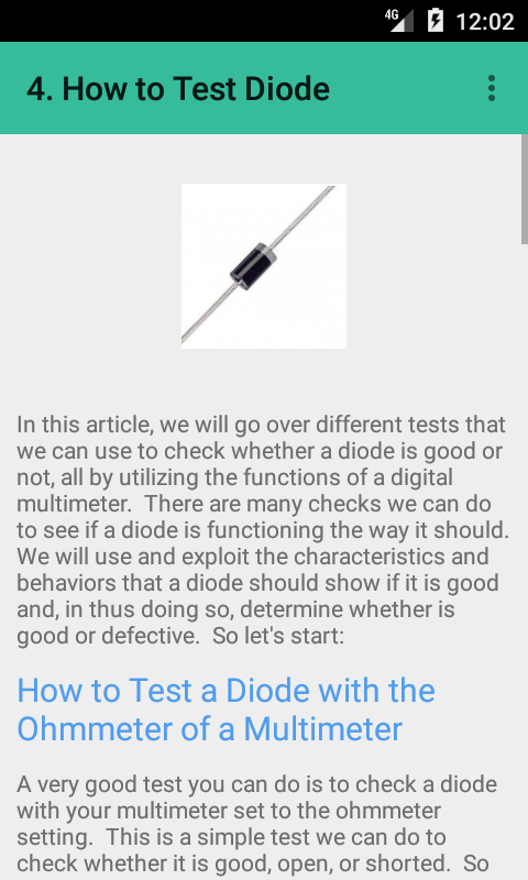 - Nesta aplicação, você vai aprender como fazer o teste de diodo, fusível, capacitor, resistor, transistor, relé e também um bônus: bateria.