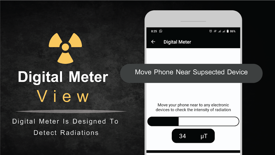 Inicie o aplicativo detector de radiação gratuito enquanto deseja localizar os raios UV ao seu redor. O sensor do seu telefone Android pode ser usado como detector de ondas e localizador de EMF. O aplicativo celular localizador de radiação EMF atingirá o sinal que se aproxima como detector de sinal e tropeçará na radiação como aplicativo gratuito rastreador de radiação gama.