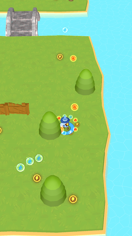 Run using the joystick controls to move around. Collect the magical elements and unleash their power on the foes!