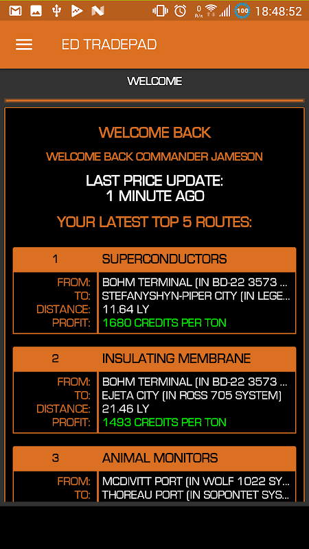 Versões Antigas de Elite Dangerous TradePad