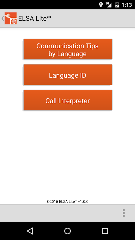 ELSA Lite foi projetado para ajudá-lo a se conectar rapidamente com um intérprete para ajudar a resolver qualquer comunicação envolvendo uma pessoa falando uma língua diferente do Inglês. Use o recurso de um toque no ELSA Lite se conectar a um intérprete ao vivo em qualquer um dos mais de 180 línguas e dialetos. ELSA Lite oferece acesso imediato a uma Hotline espanhol ou para um call center onde você pode perguntar para qualquer outra língua encontrado. ELSA Lite oferece aos usuários duas características adicionais que podem ser de grande valor quando se trabalha com pessoas que falam outras línguas. O primeiro é um sistema de identificação de idioma automatizado que permite que você mostrar a pessoa uma lista de idiomas apresentados em Inglês e o conjunto de caracteres língua-alvo ou script. Uma vez que a língua é conhecido, o usuário pode entrar em contato imediatamente RTT Mobile e solicitar um intérprete para esse idioma. A segunda característica é um conjunto de dicas de comunicação culturais que fornece ao usuário informações úteis sobre qualquer um dos mais de 180 culturas. Depois de percorrer essas informações antes de se envolver com os membros de uma dada cultura vai ajudar a fazer qualquer contato mais profissional e produtiva. Para utilizar serviços de intérprete através ELSA Lite, sua organização deve estabelecer um contrato de serviço com a Interpretação RTT Mobile. A identificação de idioma e as funções de comunicação dicas culturais são livres para qualquer um usar a qualquer momento.