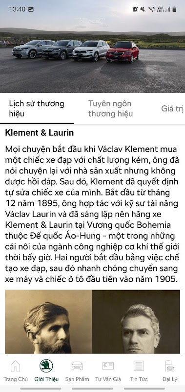 Aplicativo para apresentar carros Skoda Vietnam